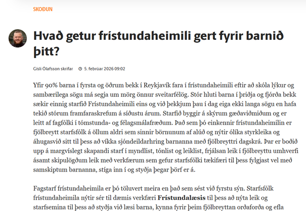 Hvað geta frístundaheimili gert fyrir barnið þitt? eftir Gísla Ólafsson, formann Fagfrí