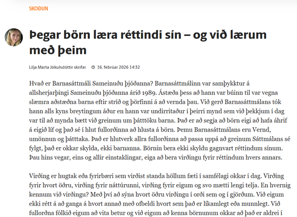 Þegar börn læra um réttindi sín - og við lærum með þeim. Eftir Lilju Mörtu Jökulsdóttur, forstöðukonu á Frístundaheimilinu Dalheimum