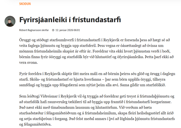 Fyrrsjáanleiki í frístundastarfi. Eftir Róbert Ragnarsson, frambjoðanda í prófkjöri Viðreisnar vor 2026