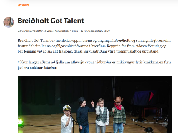 Breiðholt got Talent. Eftir Sigrúnu Ósk Arnardóttur, aðstoðarforstöðukonu í frístundaheimili og Valgeir Þór Jakobsson, formaður Samfés